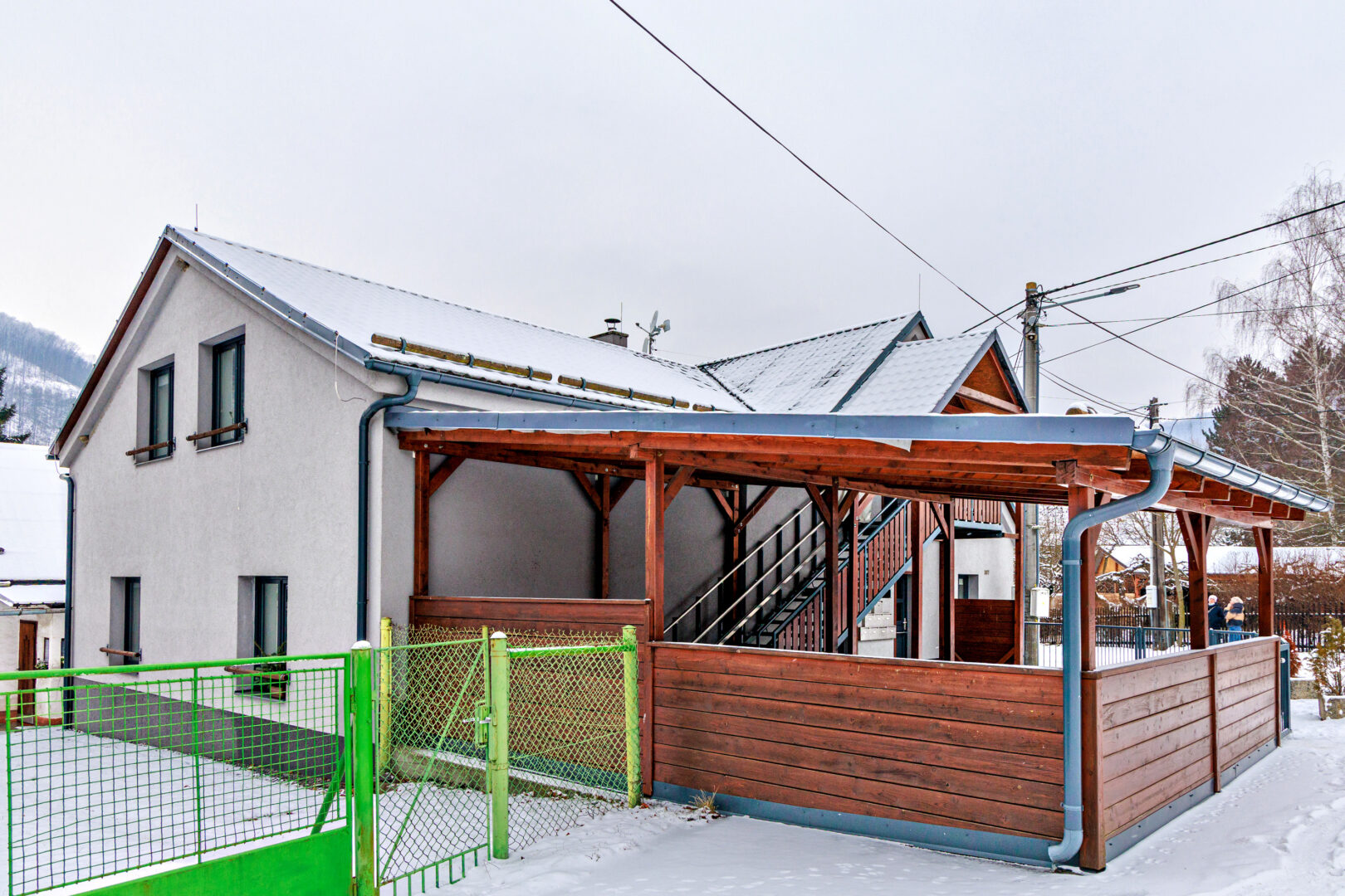 Dům je dvoupodlažní. Nájemníkům je k dispozici sklep pro uchování cyklistických kol. K dispozici také parkovací stání. Na pozemku venkovní kryté posezení (kolaudováno).